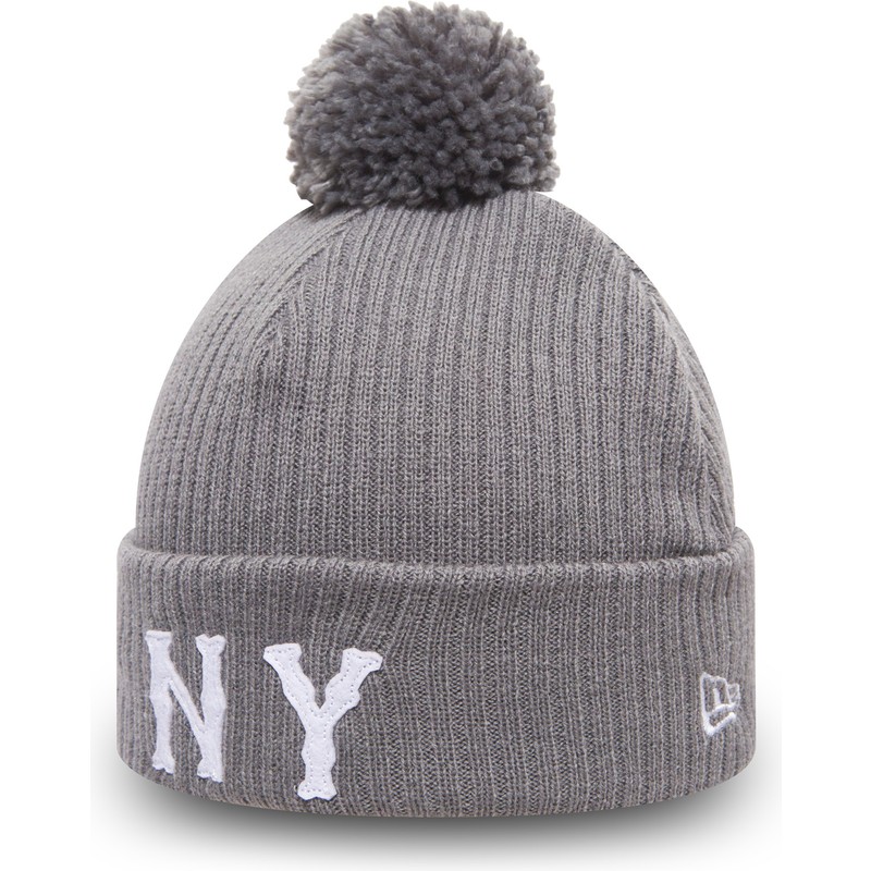 Grau melierte Strickmütze mit Bommel Cuff Knit Lightweight Felt Bobble der New York Highlanders MLB von New Era