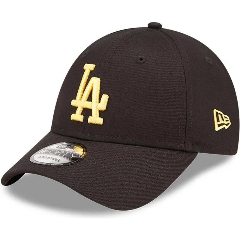 Schwarze verstellbare Kappe mit gebogenem Schirm und gelbem Logo 9FORTY League Essential der Los Angeles Dodgers MLB von New Era