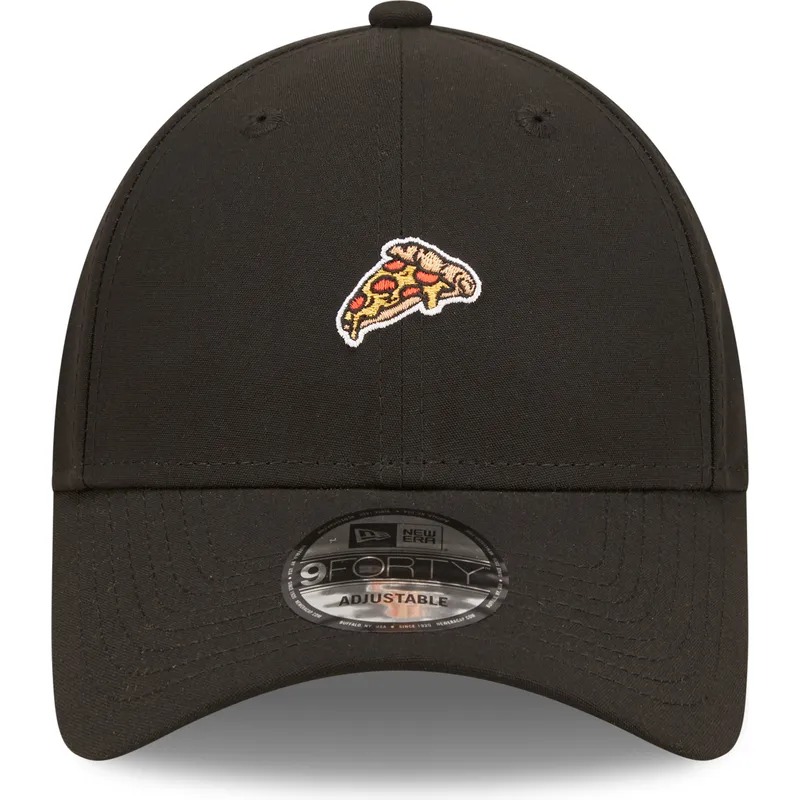 Schwarze, verstellbare Kappe mit gebogenem Schirm Pizza Have A Slice 9FORTY Food Icon von New Era