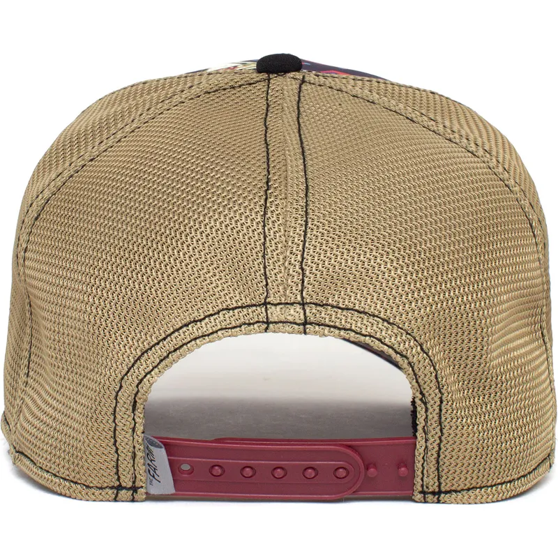 Die mehrfarbige Hyäne Joker Poker Face Casino The Farm Trucker-Kappe von Goorin Bros. ist zweifellos ein Accessoire, das in Ihrer Sammlung nicht fehlen darf. Mit ihrem einzigartigen Druck und den leuchtenden Farben wird diese Kappe überall zum Blickfang. Der Snapback-Verschluss dieser Kappe garantiert eine perfekte und bequeme Passform und passt sich der Größe Ihres Kopfes an, sodass Sie sie bequem tragen können.