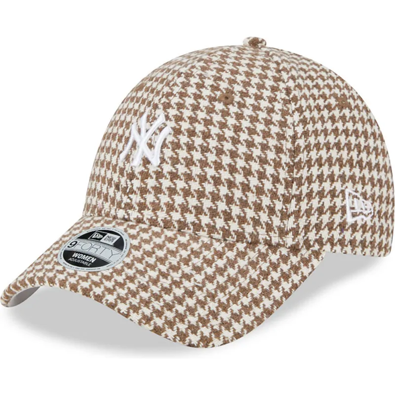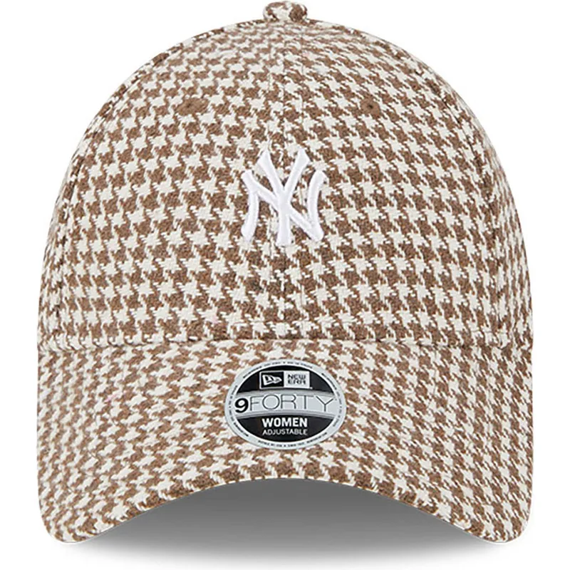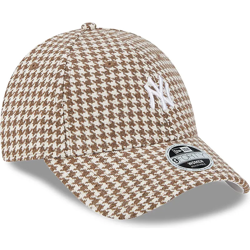 Verstellbare braun-weiße Damenkappe 9FORTY Hahnentritt der New York Yankees MLB von New Era