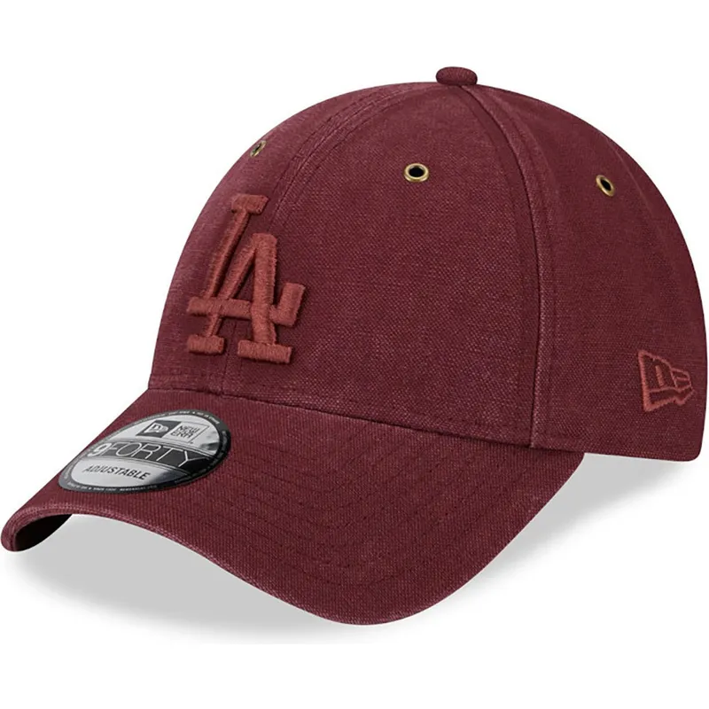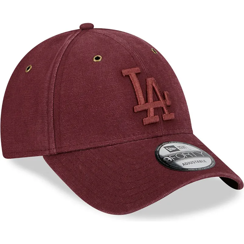 Verstellbare gebogene Kappe in Bordeaux mit Bordeaux-Logo 9FORTY Washed Canvas der Los Angeles Dodgers MLB von New Era.