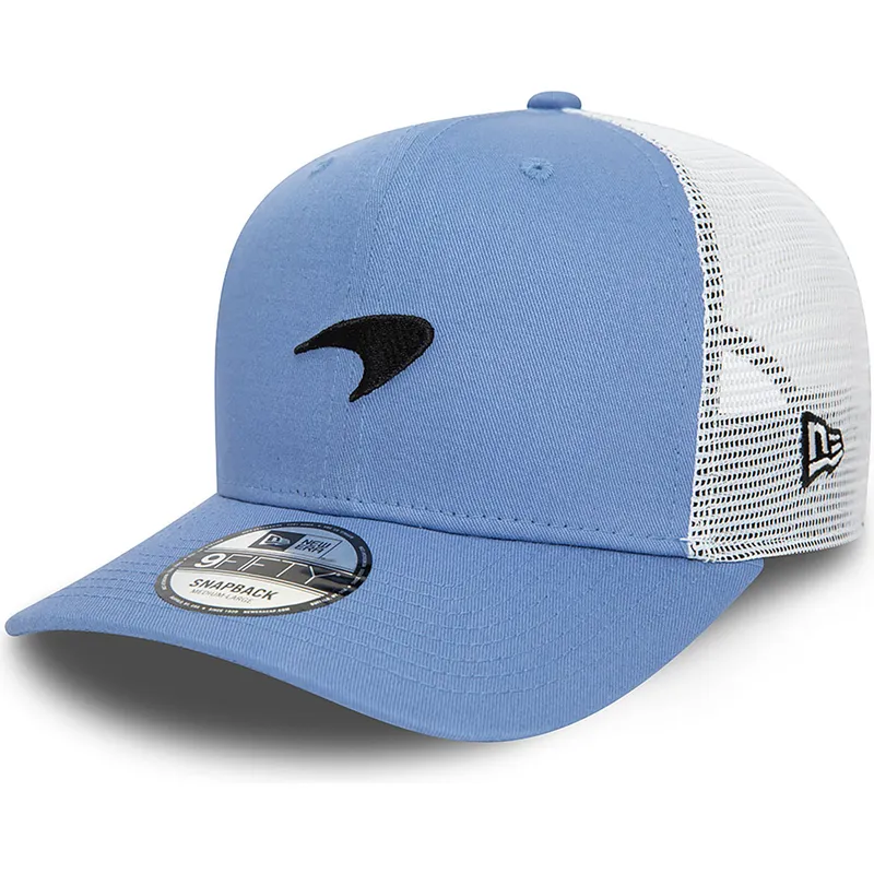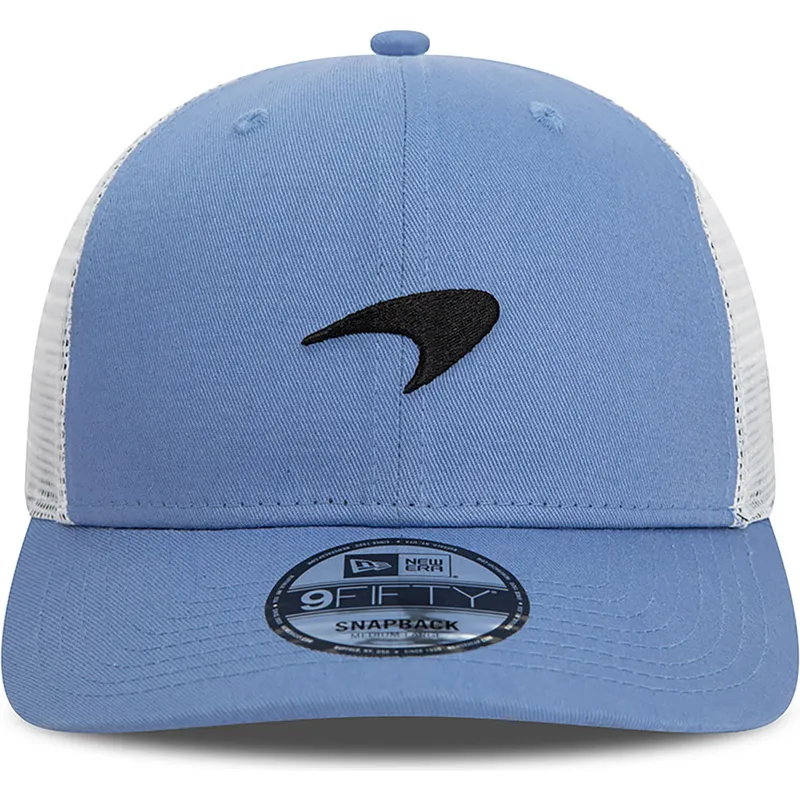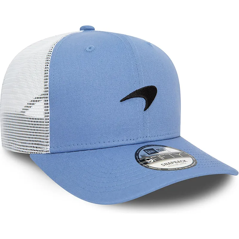 Blaue und weiße 9FIFTY Seasonal Trucker-Kappe von McLaren Racing Formula 1 von New Era