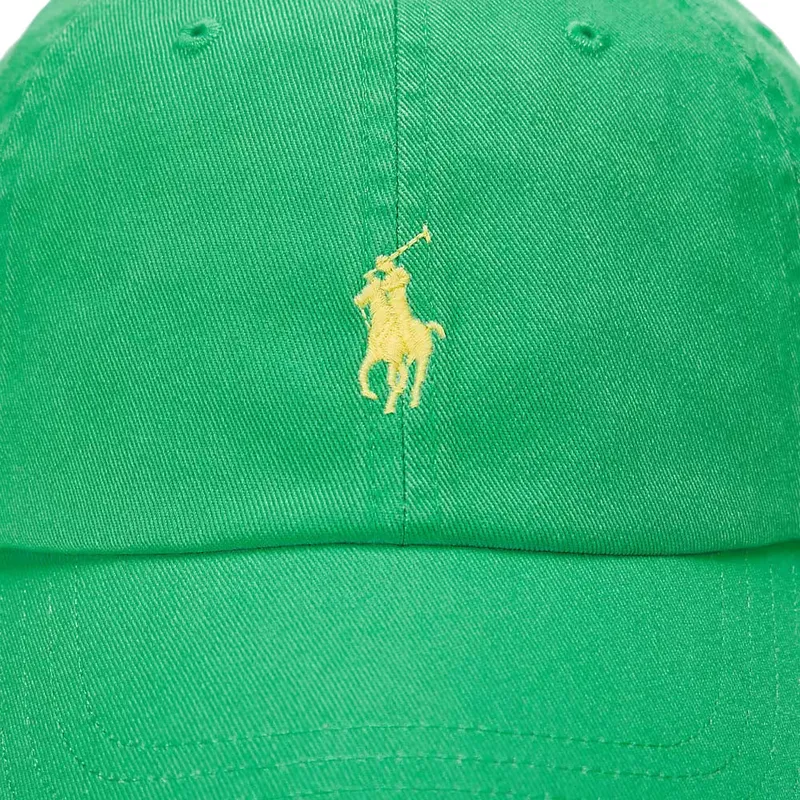 Verstellbare grüne Kappe mit gebogenem Schirm und gelbem Logo aus Baumwoll-Chino Classic Sport von Polo Ralph Lauren