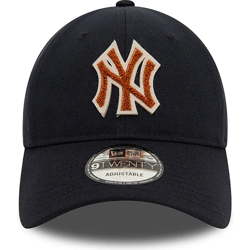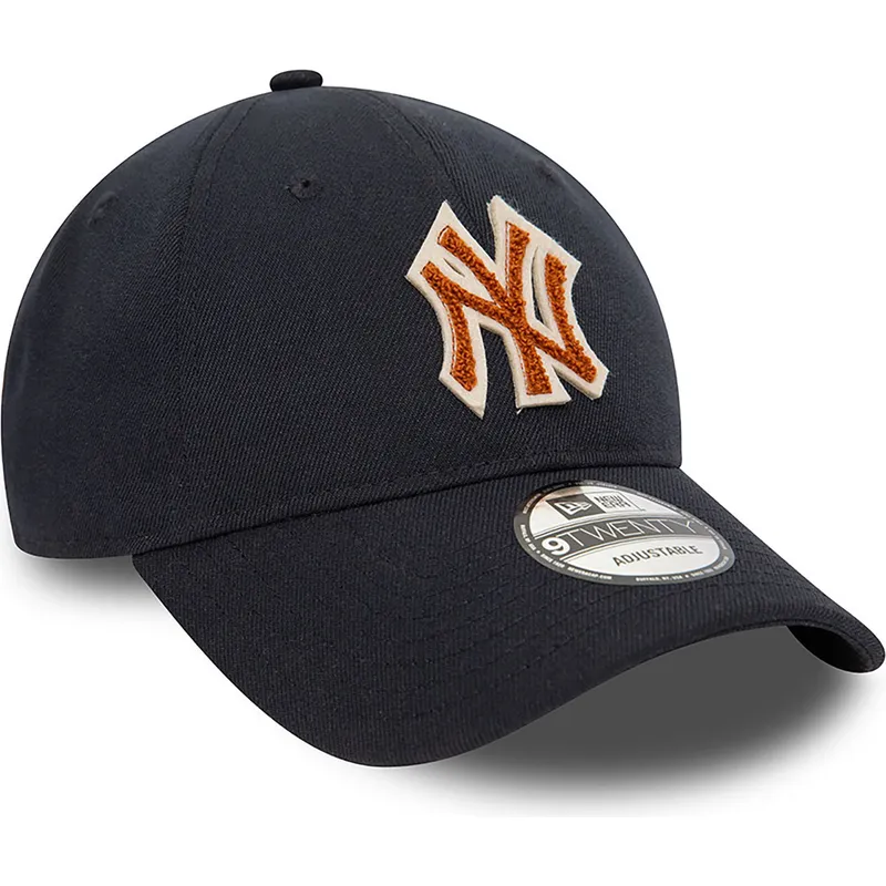 Verstellbare navyblaue Kappe mit gebogenem Schirm und braunem Logo 9TWENTY Boucle der New York Yankees MLB von New Era
