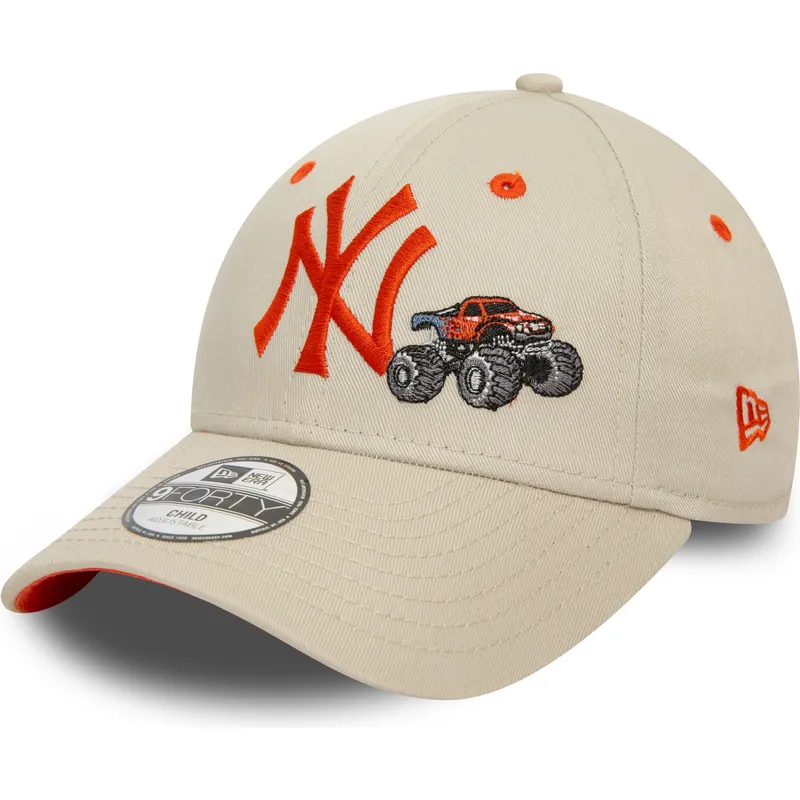 Die New Era 9FORTY Graphic Monster Truck New York Yankees MLB Boys' Adjustable Beige Curve Cap with Orange Logo ist ein Must-Have-Accessoire für kleine Fans dieser Baseballmannschaft. Mit dem ikonischen Yankees-Logo in Orange, das sich vom beigen Hintergrund abhebt, ist diese Kappe perfekt, um den Sportsgeist stilvoll zur Geltung zu bringen. Der verstellbare Riemenverschluss sorgt für einen bequemen und sicheren Sitz für jedes Kind, während sein Unisex-Design ihn ideal für jeden Anlass macht.