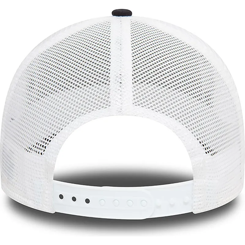 Die marineblaue und weiße Trucker-Mütze der New York Yankees MLB A Frame Seasonal Infill von New Era ist unisex und somit eine vielseitige Option für Männer und Frauen gleichermaßen. Diese aus hochwertigen Materialien gefertigte Kappe ist langlebig und widerstandsfähig, eignet sich perfekt für den täglichen Gebrauch und behält ihre Form und Farbe über einen langen Zeitraum bei. Das auf der Vorderseite aufgestickte Logo der New York Yankees verleiht diesem einzigartigen Stück einen Hauch von Authentizität und Sportstolz.