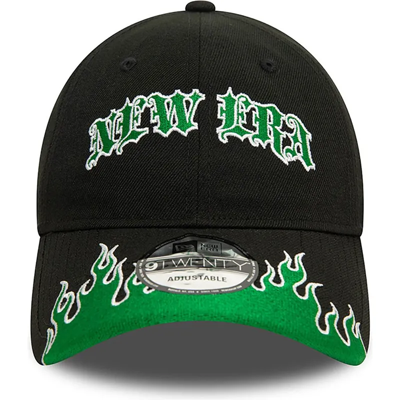 9TWENTY Race Flame verstellbare schwarze und grüne Kappe mit gebogenem Schirm von New Era