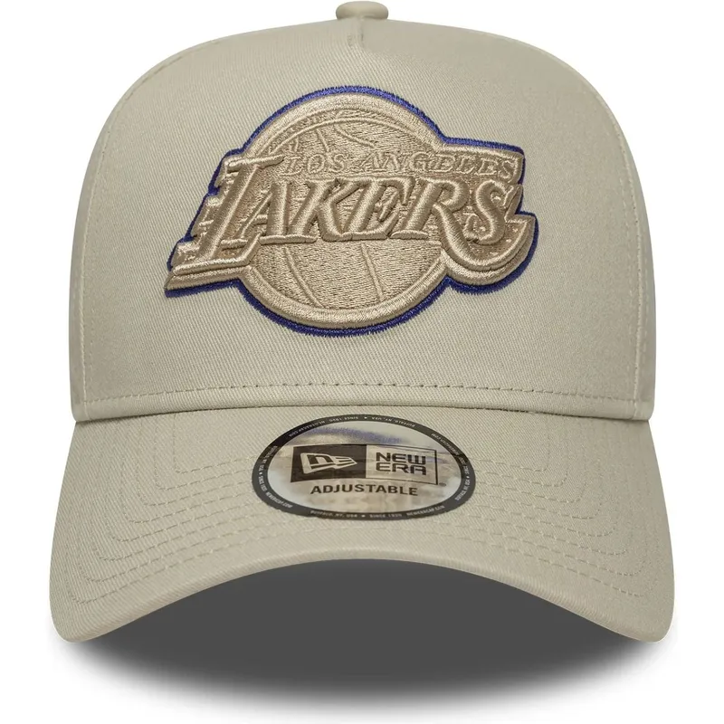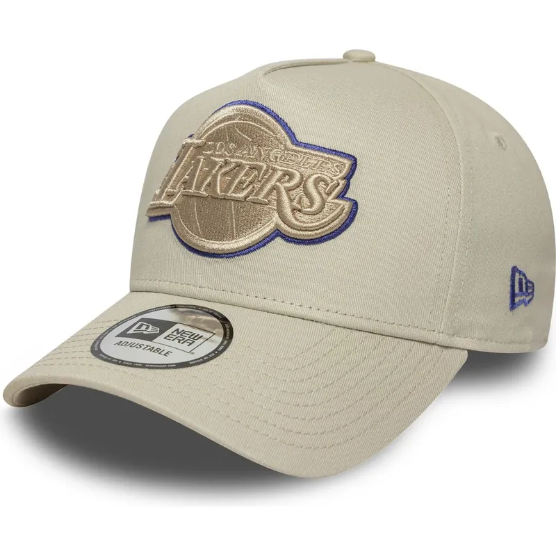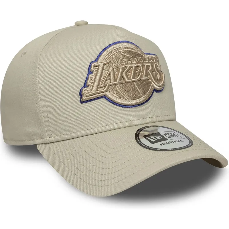 Beige Snapback-Kappe mit gebogenem Schirm und beigem Logo E Frame Tonal Outline der Los Angeles Lakers NBA von New Era
