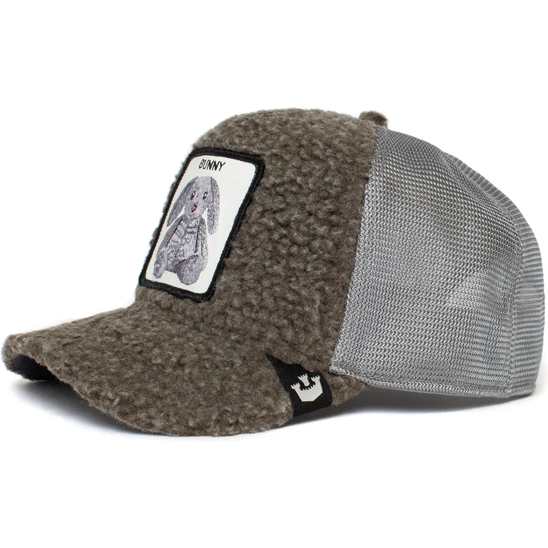 Braune und graue Trucker-Kappe mit Plüschkaninchen Bunny Business The Farm von Goorin Bros.