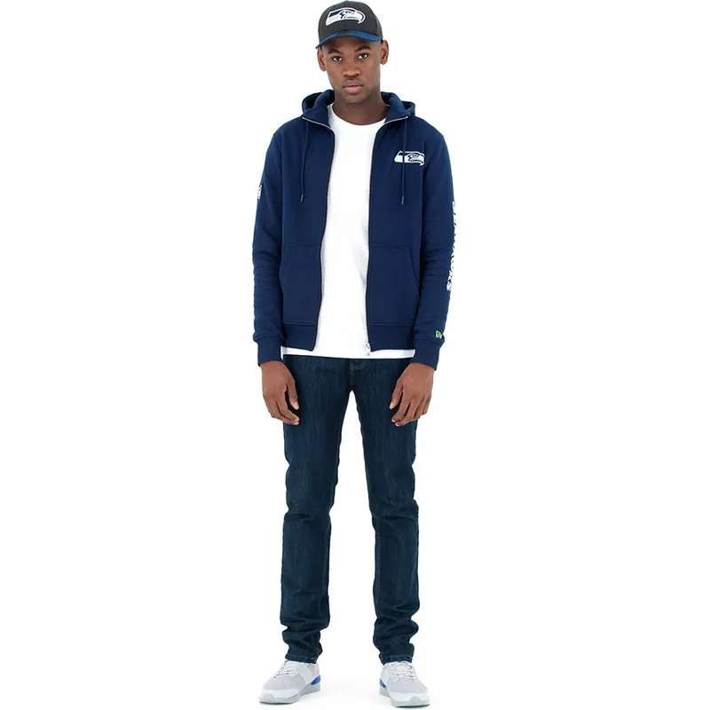 Seattle Seahawks NFL New Era Vollreißverschluss-Hoody in Blau mit Kapuze.